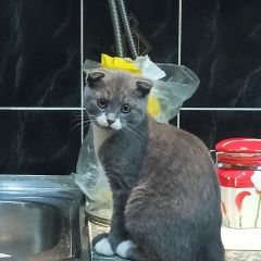 Пропал котик 4 месяца. Кличка Сема. Серый, вислоухий шотландец. Ласковый, ручной.