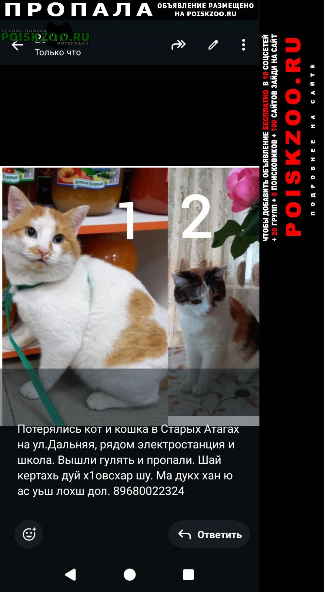 Вышли гулять кот и кошка и пропали в Чеченская республика с. Старые Атаги. Они не выживут на улице. Кто видел их, сообщите пожалуйста.