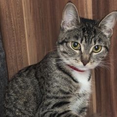 ПРОПАЛА КОШКА Кличка: Мия Окрас: Серая, полосатая с белыми лапками Особые приметы: красный ошейник Пропала 26. 03. 26 по адресу: Черноморский бульвар д. 11к. 2
