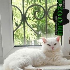 Белый, пушистый кот с золотистыми глазами