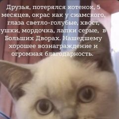 Пропал котенок 18 марта 2026г. девочка скоттиш страйт блю поинт (светло-голубые глаза, окрас похож на сиамскую кошку), 4-5 месяцев, вес 1. 7 -2 кг, среднего размера между котенком и кошкой. В районе поселка Большие Дворы, ул. Текстильщиков, фонтан, у меня есть ее паспорт, могу доказать, что я владелец.