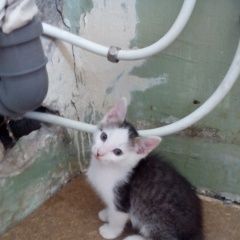 Самара, Севастопольская, 53, 1-й подъезд. Случайно выскользнул на лестничную клетку, а соседка подумала, что подбросили, и выкинула на улицу. Трёхцветный, под глазами - чёрная маска. Возраст – 9 недель. Если котёнок у..