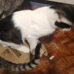 Пропал кот по кличке Малыш, не маленький, окрас белый с черным, мордочка бело-черная, глаза большие, брови на конце закручены вперед, взгляд необычный. Когда бежит, то как-будто скачет (небольшие проблемы с задними лапками), а когда идет, то лапы как-бы немного заплетаются. Пропал на улице Подгорная и может быть и на близлежащих улицах или еще где-то. Вечером накануне был как обычно в нашем дворе, утром 25. 09. 2025 г. его уже не было. Скорее всего перепрыгнул через забор и убежал неизвестно куда. Фото, к сожалению, только такое. Отблагодарим нашедшего нашего кота Малыша.