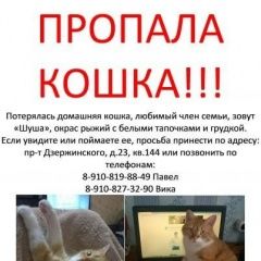 СРОЧНО ПРОПАЛА КОШКА Пропала наша рыжая кошка, выпала с 5 этажа дома 41а ул. Кривова 27. 05. 2017г. Огромная просьба, если кто видел ее или подобрал, сообщите по телефонам.. (Татьяна) или.. (Артем). Кошка рыжая,..